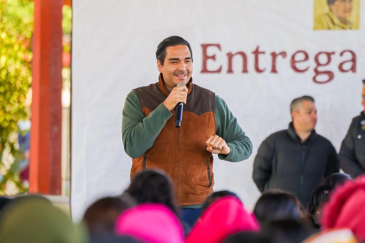El Presidente Municipal Carlos Peña Ortiz, acompañado por el Coordinador regional del Programa de Becas, Alexander Alan Bolaños Tinoco, se...