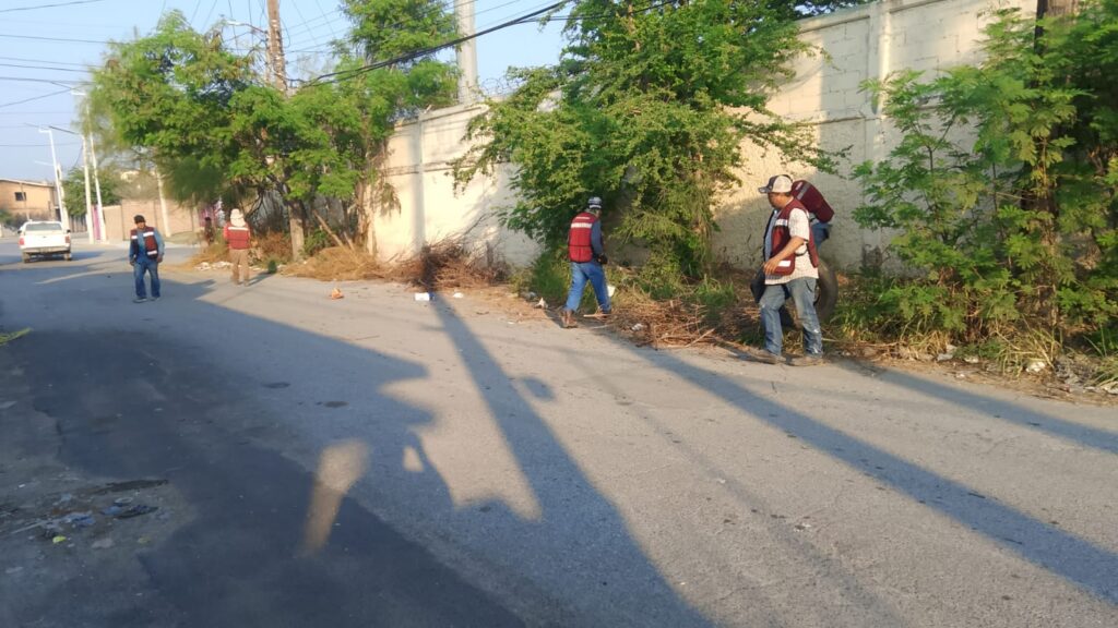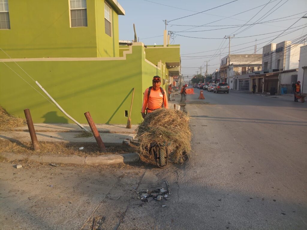 Continuación de limpieza en Calle Segunda, colonia Unidad Obrera. Limpieza de callejón Argüelles 7, Zona Centro. Limpieza, chapoleo, papeleo, barrido y raspado en plaza, colonia Nuevo Reynosa, calle Detroit con calle Los Angeles. Limpieza en avenida Rosalinda Guerrero.